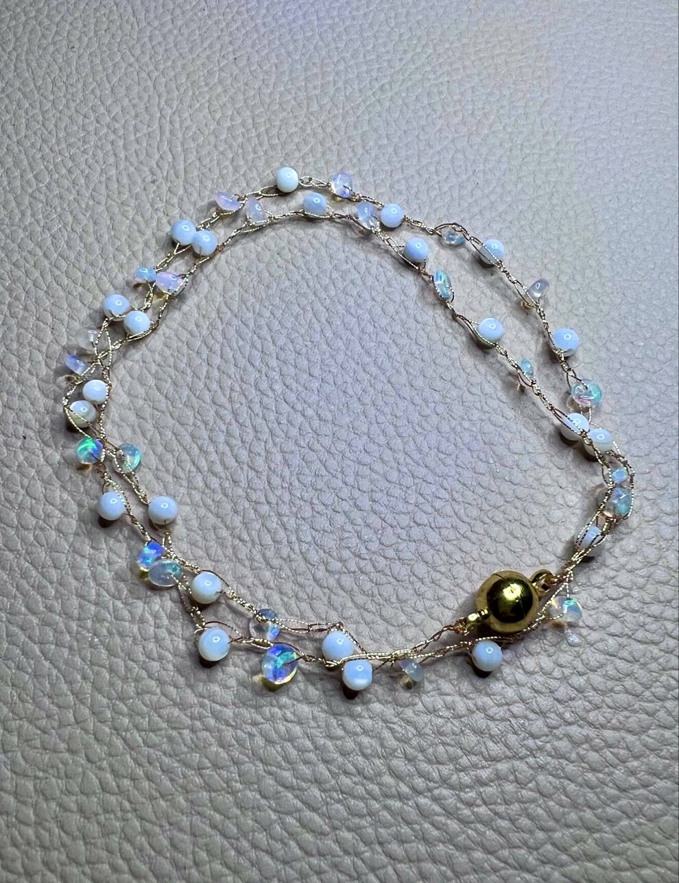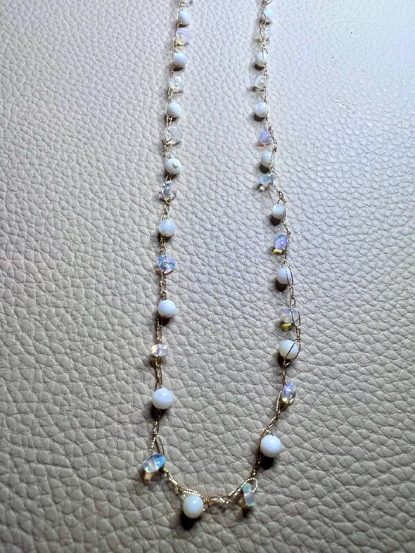 Колье легко надевать и носить: камни не массивные и их комбинация со специальными нитями практически не ощущается на теле, а магнитный замок позволяет быстро и без лишних усилий застегивать украшения.