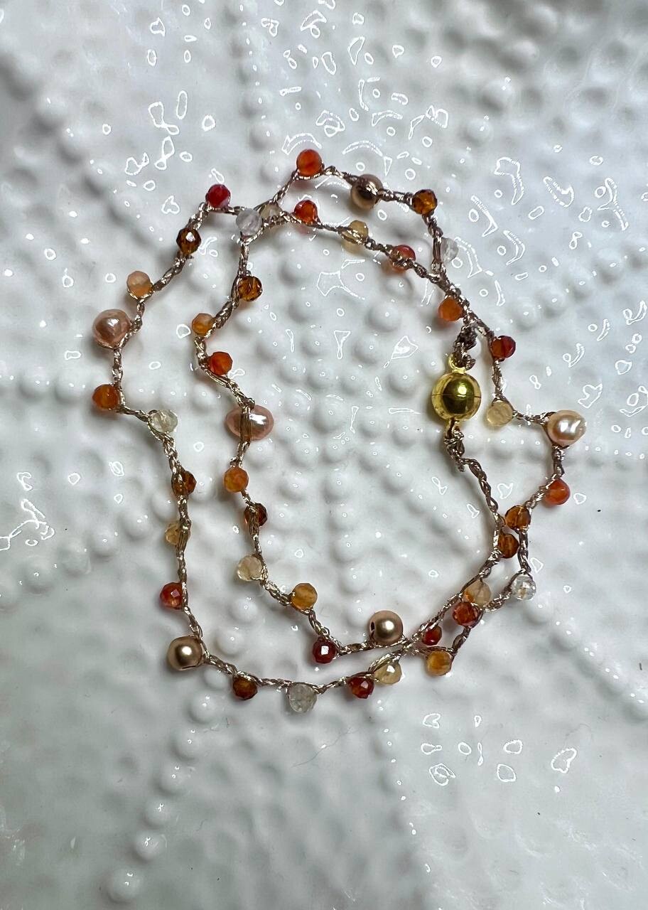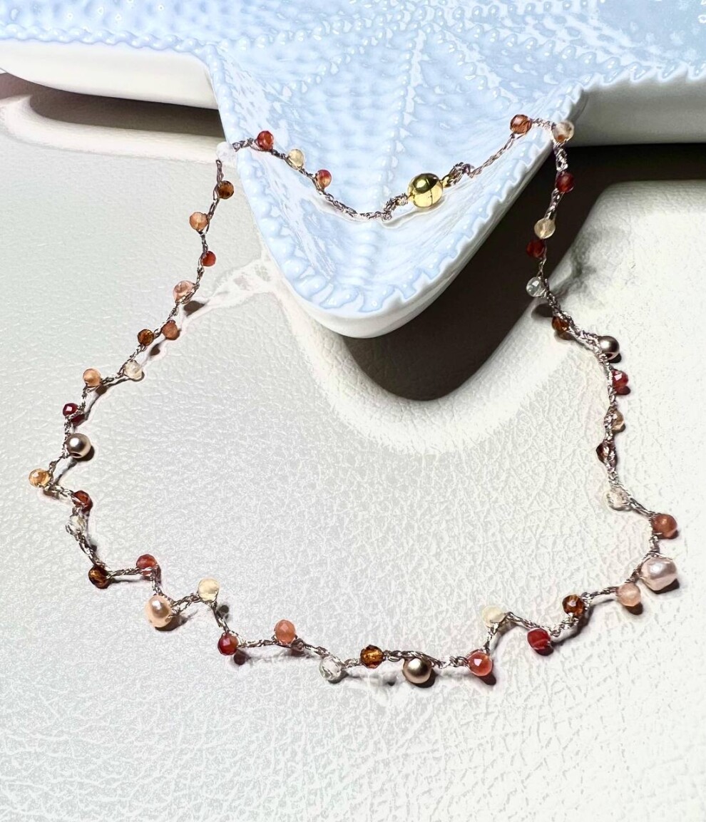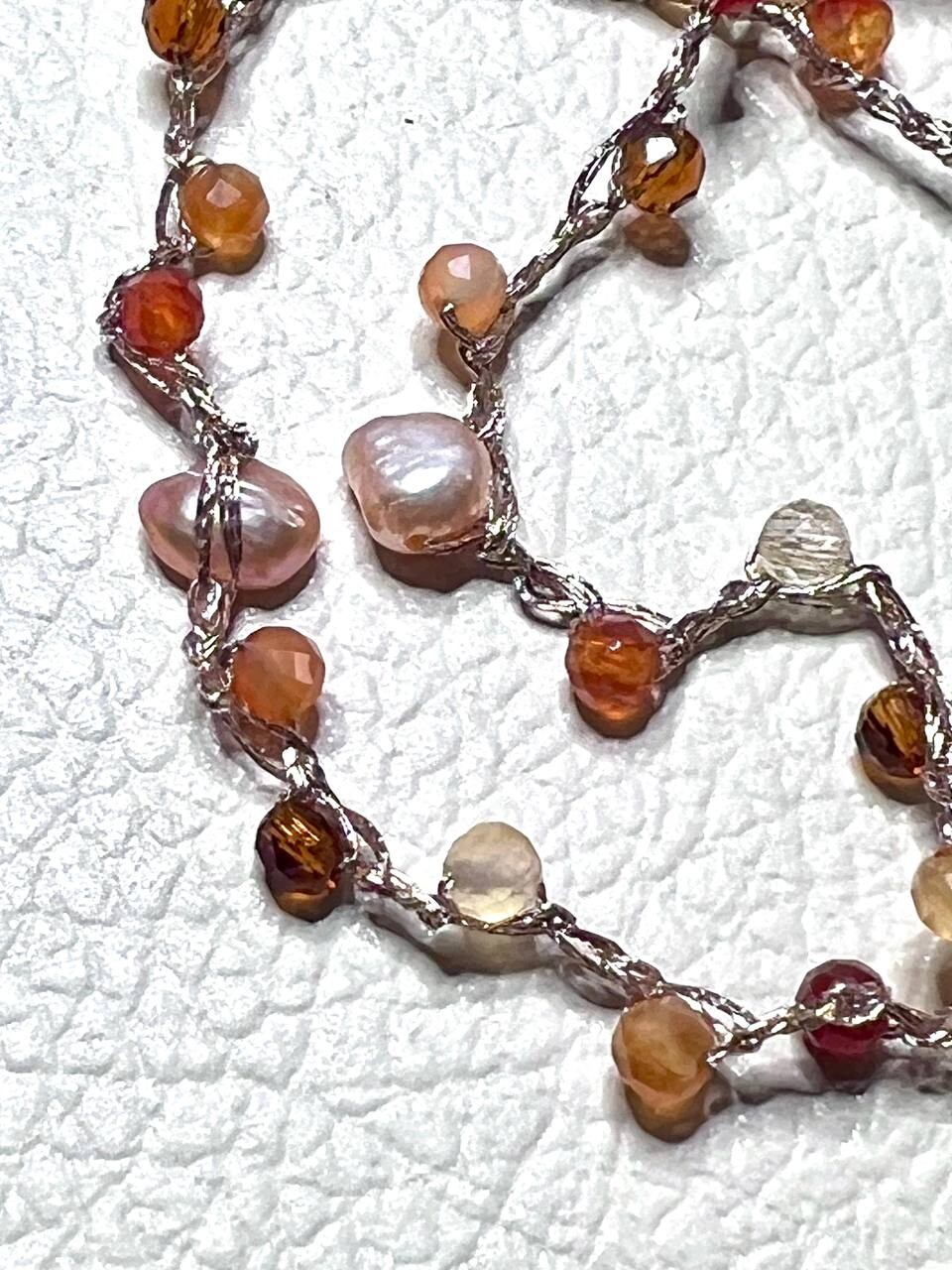 Колье: шпинель, сердолик, циркон, гематит, жемчуг
